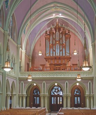 Any new organ project requires assessing priorities. No one organ can play all literature compellingly or serve all needs equally. In Ancilla Chapel, the organ’s primary function is to accompany congregational singing. Particularly given the German heritage of the Poor Handmaids, our primary inspiration came from the great instruments of northern Europe, which were designed and built to accompany robust congregational singing. We desired a totally mechanical instrument of the highest quality, the kind of instrument that will stand the test of time and last as long as the breathtaking building housing it. This is in line with the Poor Handmaids’ commitment to integral ecology, sustainability, and true economy (which considers the timespan of generations, not simply the present moment). The new instrument also had to meet practical considerations: occupy a minimal footprint in the gallery, include modern playing aids (combination action, etc.), and fit within budgetary constraints. Given limitations of space and budget, a complete two-manual and pedal instrument was the best option to fulfill this vision. Finally, we desired a true musical instrument with its own integrity and identity, the kind of instrument that speaks to the soul and is more than an acoustical synthesizer of amalgamated tone colors.