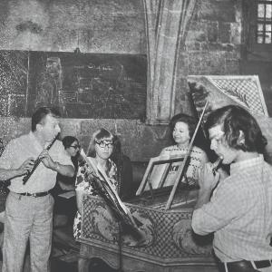 The Dominican order was preparing to sell the monastery there, which they had already left. Father Jarrié and others formed a group to safeguard it, and by the end of the 1960s it had become a cultural center. Father Jarrié inaugurated a series of concerts in the cloisters that became the first festival to focus on early music; at the time, the only music festival that existed in France was in Aix-en-Provence. The Dominican priest and Dr. Pierre Rochas were also responsible for the restoration of the Basilica of Saint Marie-Madeleine’s historic eighteenth-century organ built by Frère Isnard and the creation of the Academy, which together with the concert series would be important not only for Huguette’s career, but also for the international dissemination of early music. For fifteen years, Huguette went there every summer to teach and concertize. Eventually Eduard Melkus joined her and Christian to teach violin. In 1971 Jarrié left the priesthood to consecrate his life to music and teaching: