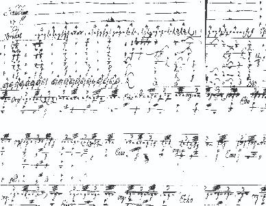 A solution to this problem might lie in its history. The original scores of the organ works of Buxtehude and Bruhns were written in tablature, an older form of notation that looks nothing like modern notation. Figure 1 shows an example of tablature and modern notation for the same composition. And here is the key point: none of the tablature originals have survived. All extant versions in tablature are copies, and copies often contain errors. Our modern scores are transcriptions from tablature to modern notation. Transcriptions may contain errors, not the least of which is that the intended octave in tablature is often ambiguous.2, 3, 4 Figure 2 shows an example of a tablature copy of Bruhns’s Praeludium in E Minor (the smaller of the two E minor praeludia).