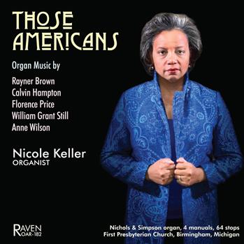 Raven announces a new organ recording. Those Americans (OAR-182, $15.98) features Nicole Keller performing on the four-manual, 64-rank, 2009 Nichols & Simpson organ at First Presbyterian Church, Birmingham, Michigan.