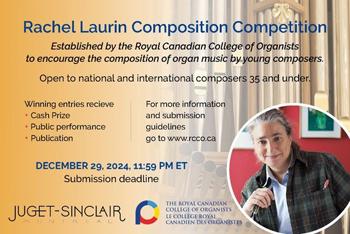 The Royal Canadian College of Organists announces its Rachel Laurin Composition Competition, open to all composers under the age of 35.