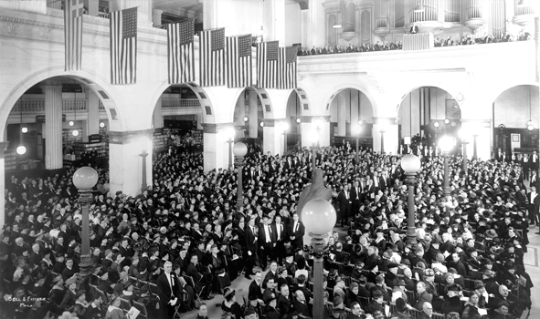 Photo caption: Leopold Stokowski and the Philadelphia Orchestra with the Wanamaker Organ, March 27, 1919