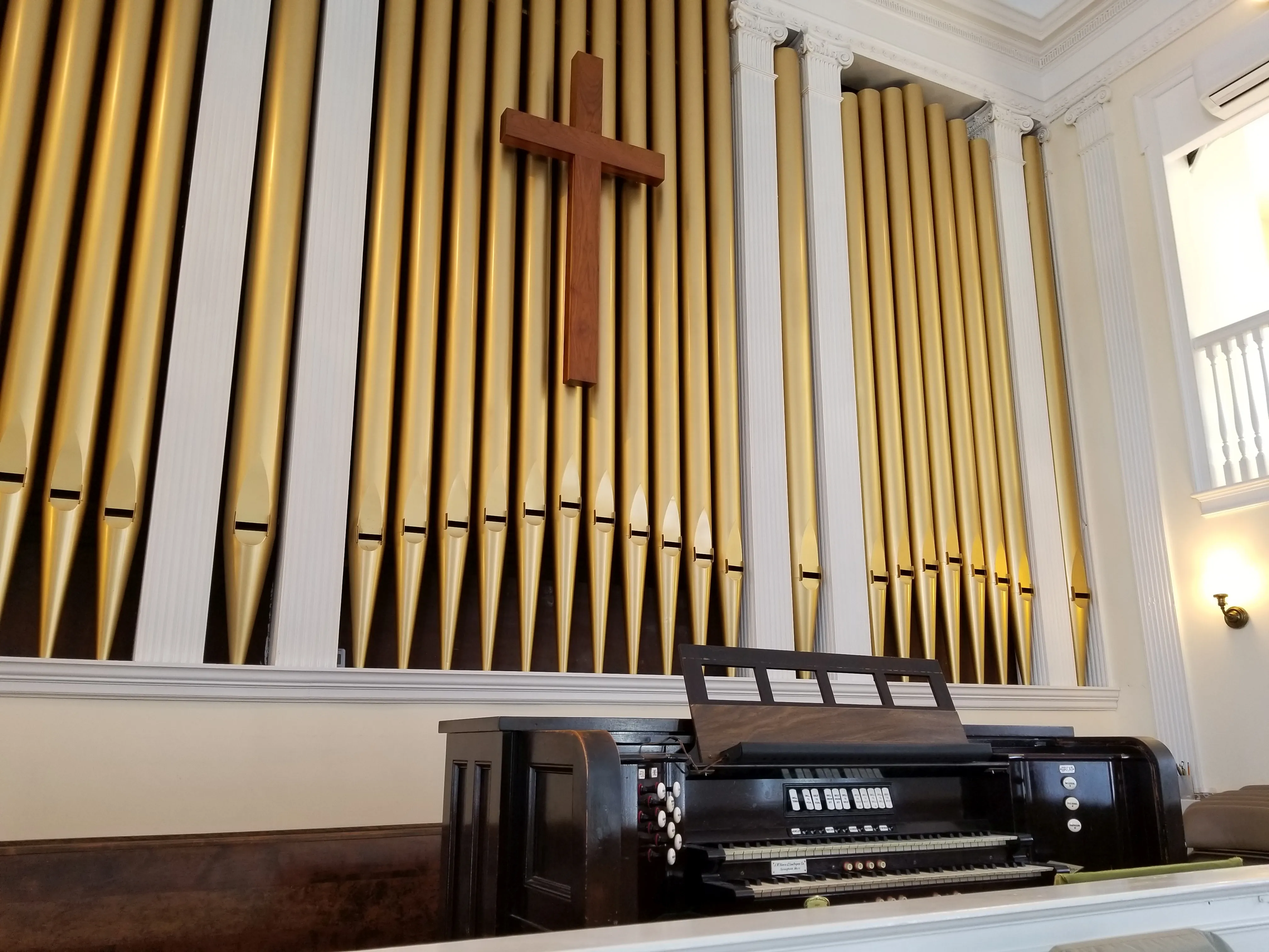 Opus 1132 is a wonderful instrument. It is ideal for all types of choral accompanying, fills the room well for congregational singing, and can tackle almost any type of organ repertoire.