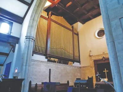 Musical priorities and perspectives change over the years. French Classical and German Baroque literature are very much still with us of course, but not quite so exclusively in the foreground. The rejuvenation was celebrated in October with a weekend of events commemorating the legacy of beloved organ teachers John and Margaret Mueller, including a masterclass with Jack Mitchener, a lecture by Russell Stinson, and a fabulous solo recital by Timothy Olsen, who heads the Organ Department at UNSCA, and was a most valuable collaborator on the project. Opus 75 was always a combination of French Classical reeds (in Great and Pedal), Silberman-inspired flue work, and Cavaillé-Coll reeds in the Swell. The two new stops are conducive to further forays into French Romantic literature, and all of the work should keep this instrument in great shape for the next several generations of students.