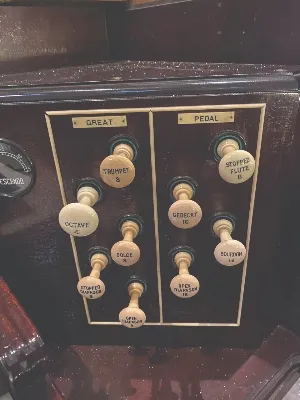 • Solidified and reduced noise in the mechanical stop action (involved removing pipework on the Great and Positiv, sometimes several times, to mitigate slider vibration issues).