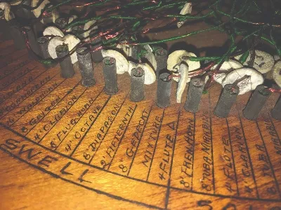 • Replaced tuning wires on the Swell Hautbois 8′. Adjusted voicing of notes 1–24. (Soldered up the large slots at the top of the bells, and put new, small slots at the very bottom of the bells. Also weighted the tongues in the bottom two octaves to soften and mellow.)