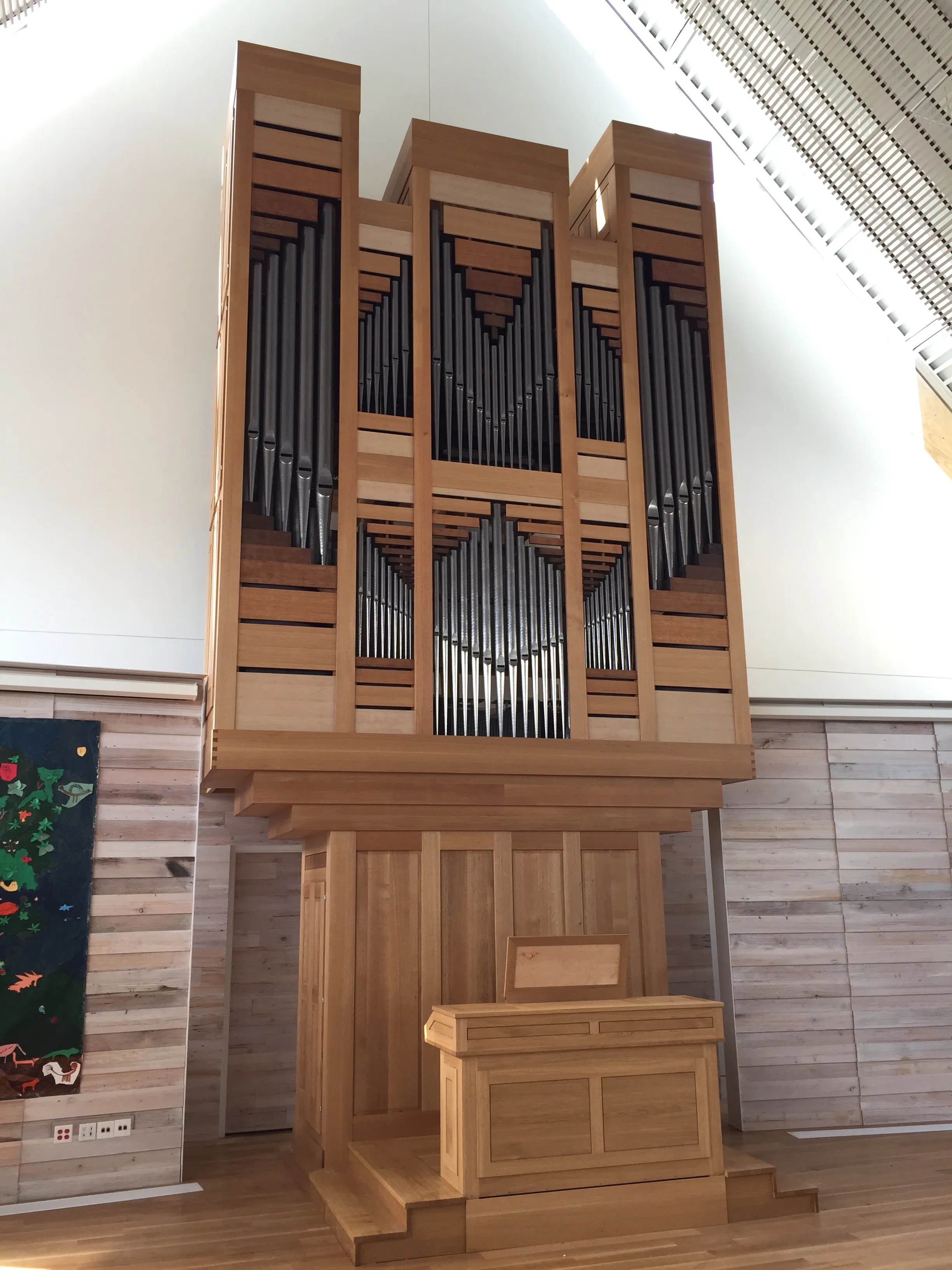 The available space in the chancel precluded building a single large instrument in the front of the building that would completely fulfill the musical mission. Further, there was no appetite for placing an organ on the main axis at the front of the building. The only solution was two organs of complementary but distinct characters.