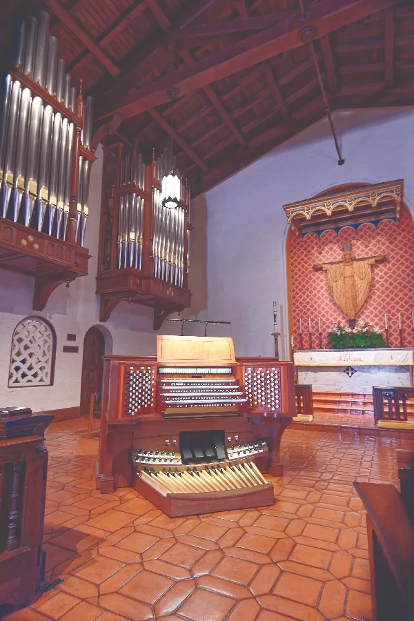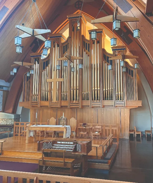 Acoustician Dana Kirkegaard advised on acoustical matters, including updates to the sanctuary’s amplification and recording systems. Preservation architect Angela Wolf Scott joined the team to guide all aspects of the sanctuary restoration, ensuring that the Vignellis’ original designs would be respected in every detail, including all visual aspects of the organ console, bench, and case. Given the integrated design of every element of the sanctuary, a new audio-visual control board as well as speaker cabinets made to look like the originals but containing state-of-the-art interior components and electronics were constructed at the Fisk shop of wood and finish to match the organ.