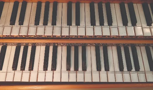 Tuning pins—near the keyboards, mounted into the wrestplank, there are removable pins onto which the strings are wound, analogous to the pegs in a violin, guitar, etc. Turning them clockwise (viewed from above) increases tension on the strings and raises pitch; counterclockwise decreases tension and lowers pitch. They are turned by an external tool (see below). There are two types of pin in normal use—“antique” pins, the tops of which are narrow rectangles, and “zither pins,” the tops of which are approximate squares. The former are tapered and unthreaded. They stay in place just by their tight fit in the wrestplank. Zither pins are normally very finely threaded.