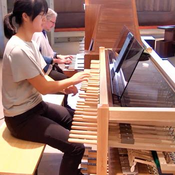 Annie Gao, a member of The Diapason’s 20 Under 30 Class of 2025, used her new Clavion carillon practice keyboard built by Reinold van Zijl to perform a postlude (Bach, Sinfonia, BWV 29) with the smaller of two Flentrop organs at All Saints Episcopal Church, Palo Alto, California, May 25.