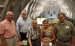 David Hurd (third from left) presented a program to the Southwest Chapter of the American Guild of Organists on May 8. Dr. Hurd featured hymns from his publication I Sing as I Arise Today. Left to right: Hank Glass, host at St. Michael and All Angels Episcopal Church, Sanibel Island, Florida; Ric Jaeggi, chapter dean; David Hurd of General Theological Seminary, New York City; Paula Leighton, chapter treasurer; and John Renfroe, executive board member.