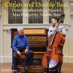 Raven announces a new recording. Organ and Double Bass features organist Donald Sutherland and bassist Mas Podgorny (OAR-965, $15.98 postpaid worldwide from RavenCD.com). Sutherland also plays organ repertoire on the CD, on the 1998 Holtkamp organ at the Peabody Conservatory of Johns Hopkins University in Baltimore. Works include Quatre Morceaux d’Eglise by Swiss composer Joseph Lauber (1864–1952), an arrangement for double bass and organ of the Adagio of Widor’s Symphony No. 5 for organ, and works by Guilain, Andriessen, and Reger.