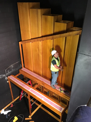 Reinstallation of Aeolian-Skinner Opus 892 is well underway. Originally built in 1932, the organ was removed from its home at Northrop Auditorium in Minneapolis, Minnesota, in 2011. Foley-Baker, Inc. of Tolland, Connecticut was selected to fully rebuild the organ and installation will be completed in 2018. Pictured here is a 32′ Bourdon chest in the Pedal division.