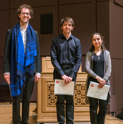 Vincent Bernhardt of France won the grand prize (CHF 5,000); second prize (CHF 3,000) was awarded to Emmanuel Arakélian, also of France; third prize (CHF 1,500) and audience prize (CHF 500) were awarded to Olga Papykina of Russia. The next competition will take place in 2019. For information: www.festivalbach.ch.