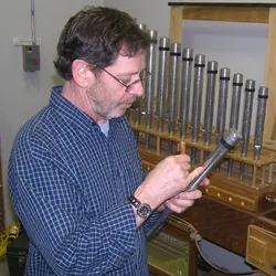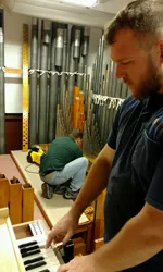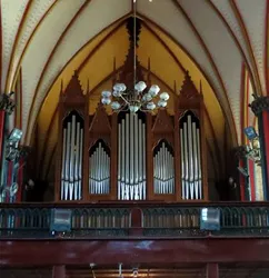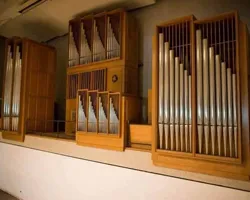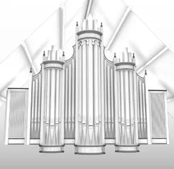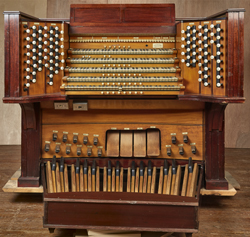 Austin Opus 558 was built for the mammoth auditorium of the Medinah Temple in downtown Chicago. The Moorish-styled edifice was dedicated in 1912, featuring an auditorium to seat 4,200 persons, designed by Harris W. Huehl and Richard G. Schmid, members of the temple. The auditorium’s acoustic was notable to the extent that the Chicago Symphony Orchestra often utilized the space for concerts and recordings. The design of Opus 558 was influenced by Chicago’s J. Lewis Browne, organist of Medinah and the Church of Our Lady of Sorrows (now a minor basilica). The 72-rank organ was among Chicago’s largest at the time of installation, controlled by a five-manual drawknob console in a gallery as well as a moveable four-manual, stop tablet console (which was replaced in 1931). When Medinah was repurposed for commercial use, the organ was safely removed to storage in April 2001, a project that received considerable regional television coverage. For information: newoldchurch.org.