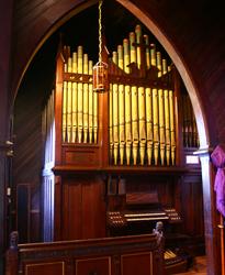 The Bergstrom organ was built as a one-manual instrument in 1891 for Christ Church. In 1949, the much larger congregation had the organ rebuilt and enlarged significantly on new electro-pneumatic windchests with a Swell division and additions to the Great and Pedal divisions. After 60 years in this state, it was decided to reconstruct the organ with a new mechanical action, retaining the original pipework, with some new ranks of pipes fitting the style of the original 1891 organ.