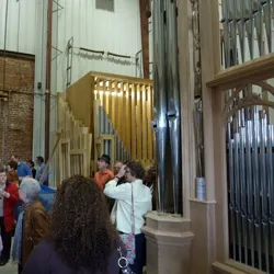 The 1881 cathedral was severely damaged in the earthquake of 2011. Since then, the Transitional Cathedral (a.k.a. “Cardboard Cathedral”) has been in use a few blocks distant with a full calendar of daily services. Plans are in formation for the removal of the old cathedral ruins and construction of a new cathedral in the central city’s Cathedral Square, a project to include restoration of the cathedral’s Hill organ. The Transitional Cathedral was designed by Japanese architect Shigeru Ban and has been internationally acclaimed as a model for emergency architecture that speaks to the future while respectfully bowing to the past.