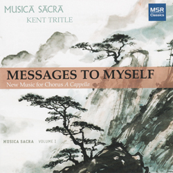 Kent Tritle is featured on a new recording, Messages to Myself, with Tritle conducting the choral group Musica Sacra. The recording is a compilation of nine new sacred and secular a cappella works, written by living composers over the past 25 years.