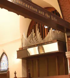 Létourneau Pipe Organs has rebuilt Aeolian Skinner Opus 1234, from the mid 1950s, for Trinity Lutheran Church, Kaukauna, Wisconsin. The entire instrument has been rebuilt and restored, with the addition of two new chambered cases and a new rank of polished façade pipes featuring the 8' Principal. The installation also features a completely renovated gallery area and chancel, with hard surfaced flooring to enhance the acoustics in the worship space.