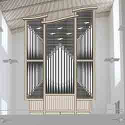 The new organ is a two-manual tracker of 26 stops and 35 ranks. Stop action is electric with 2,000 memory levels. The façade complementing the modern interior of the sanctuary was designed by the Danish firm of Birch and Svenning of Horsens, Denmark.