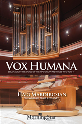 MorningStar Publishers announces publication of Vox Humana: Essays about the World of the Pipe Organ and Those Who Play It, collected articles by Haig Mardirosian from his column in The American Organist magazine from 2003 until 2013. Mardirosian is dean of the College of Arts and Letters at the University of Tampa, Florida, as well as an organist, composer, conductor, and recitalist. The foreword is contributed by Craig R. Whitney. This annotated collection of essays examines the organ and the organist through humor, memory, business, liturgy, and artistry.