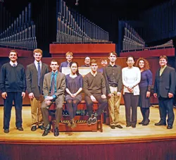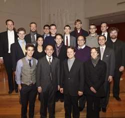 On November 22, 2014, Paul Jacobs (shown front row, third from left) and his current and former students from Juilliard presented the complete organ works of J. S. Bach in an 18-hour marathon concert (New York City’s first) at St. Peter’s Lutheran Church in Manhattan, presented by the country’s largest classical radio station, WQXR.