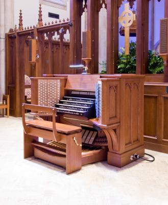Schoenstein & Co. has built a new four-manual console for Aeolian-Skinner Opus 1399 of 1962 at the Cathedral of St. Philip in Atlanta, Georgia. The cathedral’s comprehensive music program, headed by organist/choirmaster Dale Adelmann and his associate David Fishburn, includes an extensive series of regular recitals as well as other programs involving visiting artists. The console includes the most advanced playing aids and a layout of stops and controls that promotes efficiency and ease of performance. Console mobility is another important factor. Also, provision has been made to accommodate the addition of a large Antiphonal organ in the west gallery at some point.