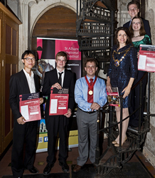 For improvisation, the Tournemire Prize was awarded to Martin Sturm (Germany), the Douglas May Award to David Cassan (France), and the audience prize to Simon Thomas Jacobs. Shown in the photo are Jihoon Song, Martin Sturm, Simon Thomas Jacobs, Annie Brewster (Mayor of St. Albans), Anna-Victoria Baltrusch, and Benjamin Sheen.