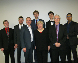 Back row: finalists Mitchell Miller, Nicholas Capozzoli, Colin MacKnight, Thomas Ingui, and Alcee Chriss; front: judges Alan Morrison, Joan Lippincott, and Christopher Young