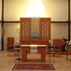 The organ was purchased from St. Ann’s by Thom Thomas in 2014, restored, and given to Holy Cross in memory of his parents, Robert and Dorothy Thomas.