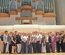 The University of Alabama Organ Department hosted the 25th anniversary of the Holtkamp concert hall organ, opus 2005, and alumni reunion on October 12, 2013. The organ in the concert hall of the Frank Moody Music Building was created by the Holtkamp Organ Company of Cleveland, Ohio, at the instigation of Warren Hutton, then professor of music and university organist. The instrument was funded entirely by private donors. There are 86 ranks of pipes and over 5,000 pipes in the instrument. Key action is mechanical, and the stop action is electric. There is mechanical intermanual coupling, but also additional electrical coupling for Swell to Great, Positiv to Great, and Swell to Positiv. These three special couplers are designated with an “E,” so there is a “Swell to Great E” coupler as well as the usual “Swell to Great” coupler. Walter Holtkamp, Jr., the builder, described the physical organization as follows: “The Solo, an enclosed division, is located directly above the console. Above the Solo is the Great and at the top of the central section we placed the Swell. Flanking the Great and Solo is the Pedal. Above the Pedal, on each side, is the Positiv.”