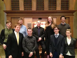An Alumni Decade Recital took place at 3 pm with the following alumni performers: Mary Williamson, Class of 1969; David Buice, Class of 1976; Jonathan Biggers, Class of 1982, 1984; Jeff McLelland, Class of 1992; and Donald Given, Class of 2009. Works performed were: L. Couperin: Chaconne in G Minor; J.S. Bach: Kommst du nun, Jesu, vom Himmel herunter, BWV 650, Prelude and Fugue in B Minor, BWV 544; Frescobaldi: Toccata nona from Toccata e partite, Book I, 1615/37; Buxtehude: Praeludium in G Minor, BuxWV 149; Reger: Phantasie über den Choral ‘Halleluja! Gott zu loben, bleibe meine Seelenfreud,’ op. 52, no. 3; and Franck: Choral in B Minor.