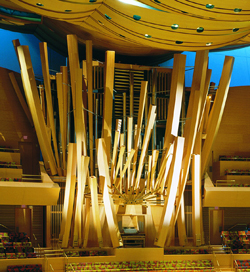 Designed by Frank Gehry and Manual Rosales, the organ was built by Glatter-Götz Orgelbau, in collaboration with Rosales.